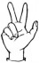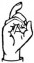 На ћирилици написано ЛАБУДА ТРМЧЕВИЋ састоји се из 14 слова [?]. Исписано ћириличном једноручном азбуком за глувонеме: